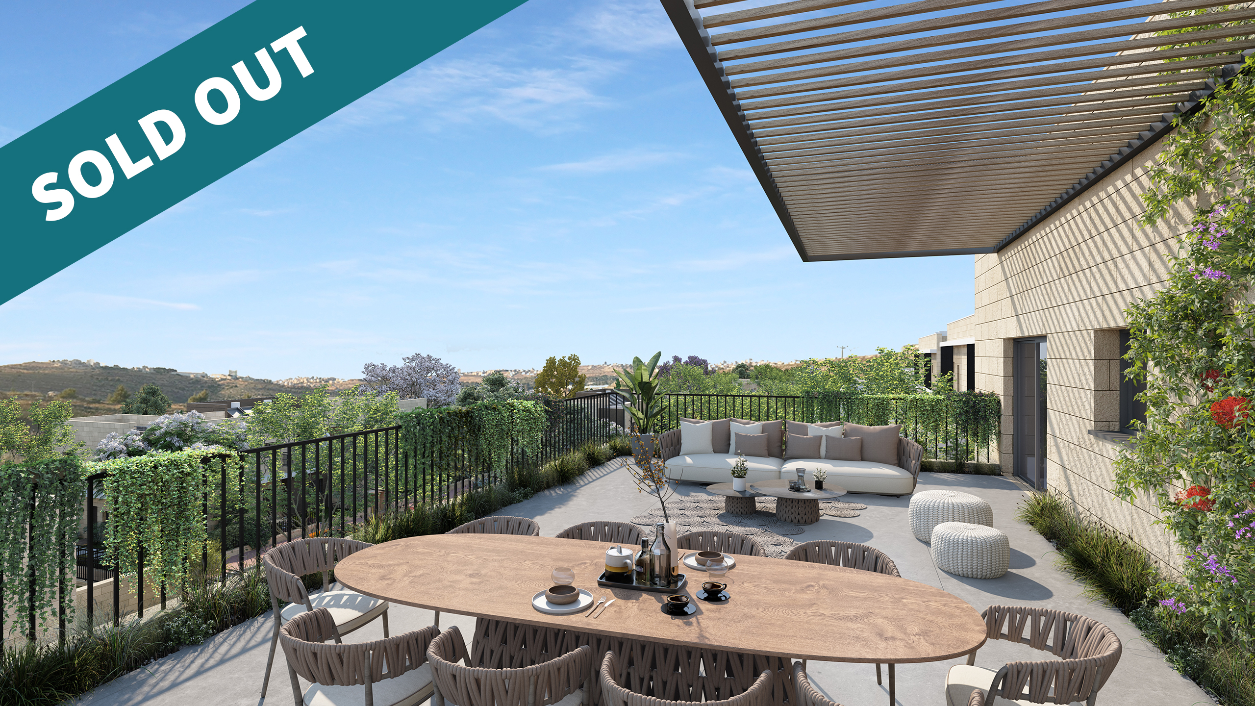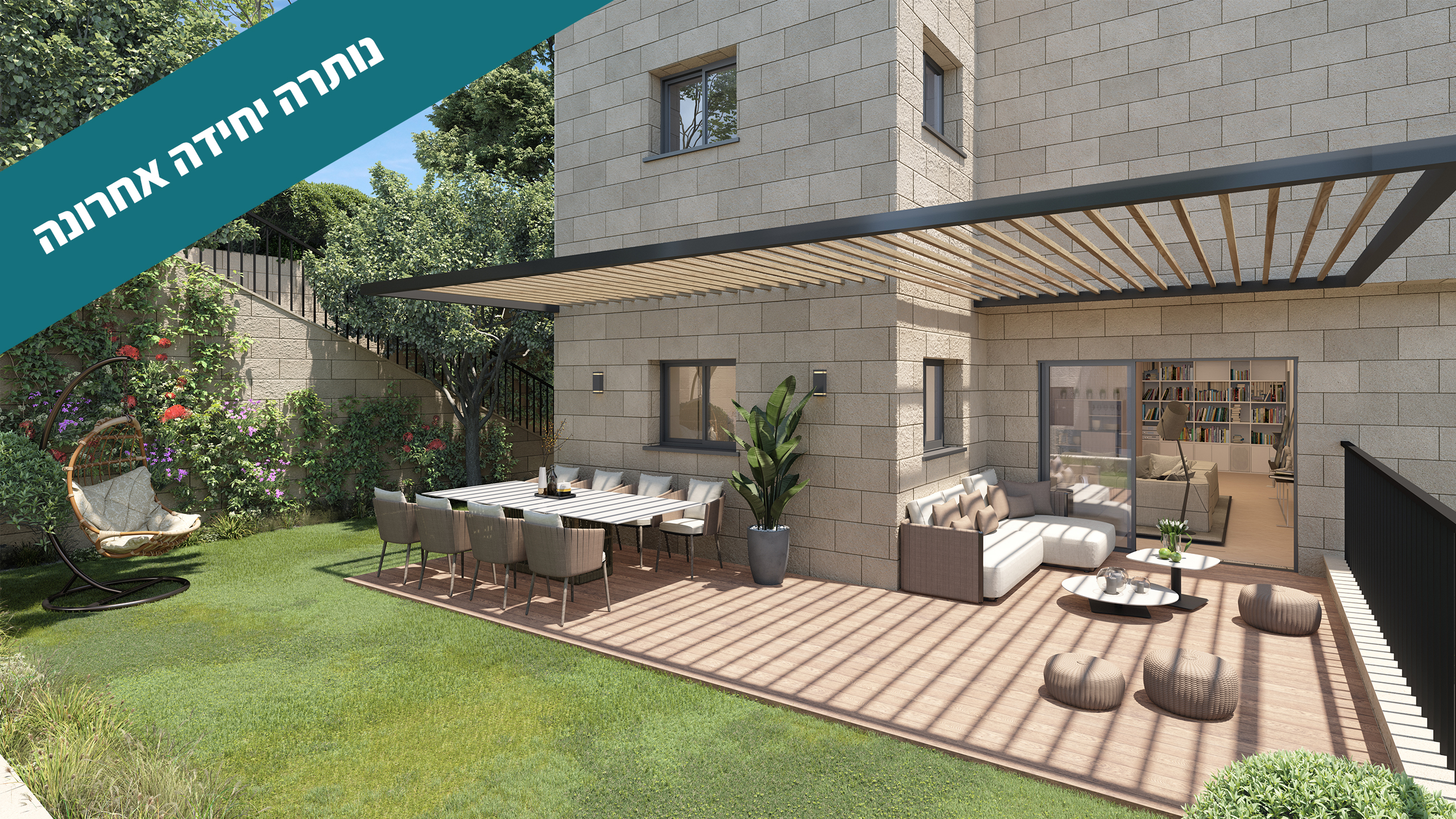החיבור לארץ לאדמה ולסביבה מורגש בשילוב עץ ואבן. האבן היא אבן ירושלמית מרגשת עם חיפויי פייבר צמנט עץ דקורטיביים ואיכותיים. ההשקעה בפרטים הכי קטנים מורגשת.