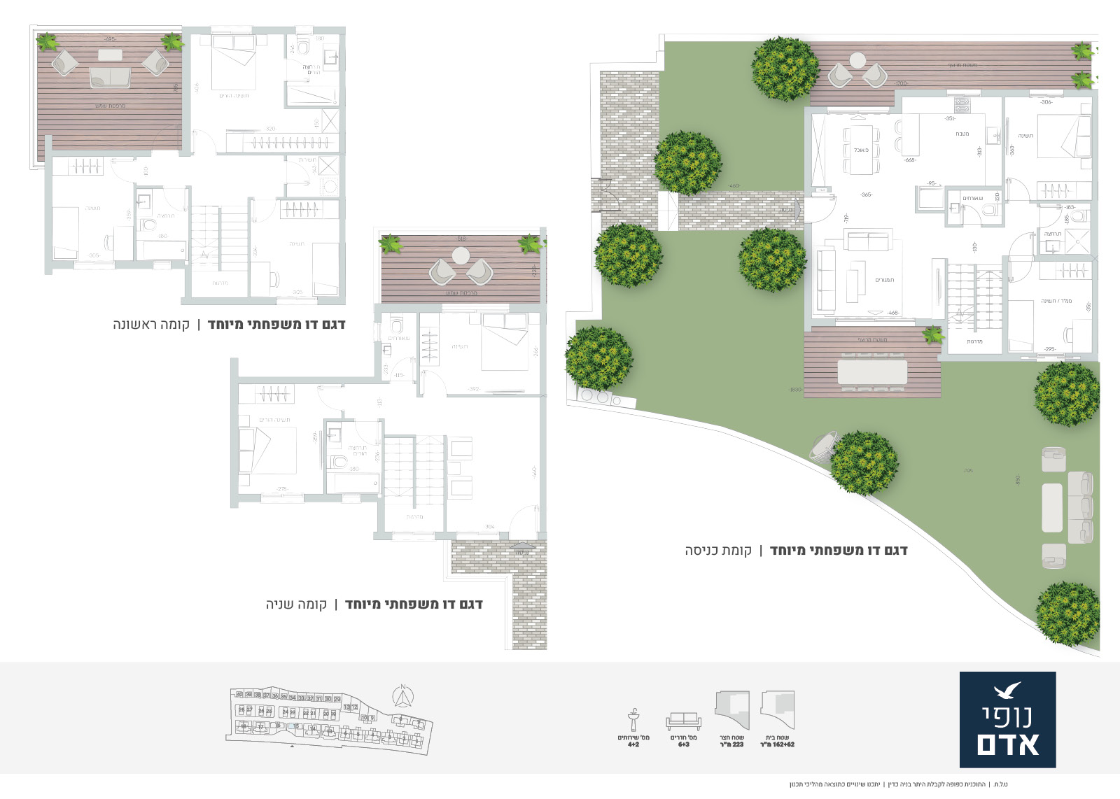 בפרויקט נופי אדם, תוכלו לבחור בין מגוון טיפוסי בתים שיגשימו את כל הצרכים של המשפחה שלכם.